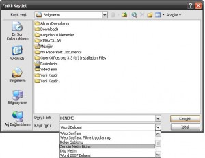 2.Açılan küçük ekranda dosya formatını “zengin metin biçimi” olarak kaydedin. Bu işlem ile .doc. uzantılı dosyayı. rtf uzantıya çevirmiş olduk.